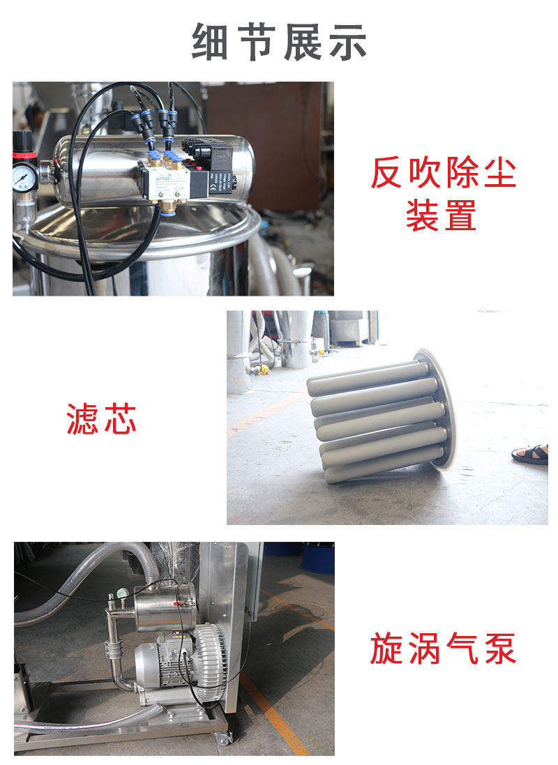 【物料要求】:粉末,顆粒物料 【產(chǎn)品簡述】:真空上料機是一種密封無粉塵遺漏的負壓抽真空上料設備,與混合機,反應釜,振動篩等配套使用...